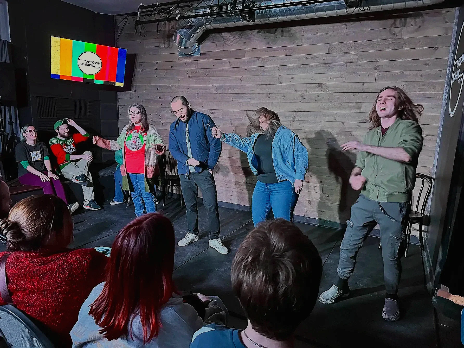 Improvisation (improv) is a form of live theater where the story, characters, and dialogue are created on the spot. Using a single audience suggestion, trained improvisers work together in real time — listening, agreeing, and supporting one another — to build an original world from nothing. Improv is spontaneous, collaborative, and completely unscripted. Every performance is different, shaped by the energy of the room and the ideas of the audience. The result is a live improv comedy experience that can be laugh-out-loud funny, unexpectedly moving, and always one-of-a-kind. At Uptown Improv Co., improv isn’t just entertainment — it’s a creative practice that builds confidence, connection, and community in Utica and the Mohawk Valley. The best way to understand it is to experience it live.